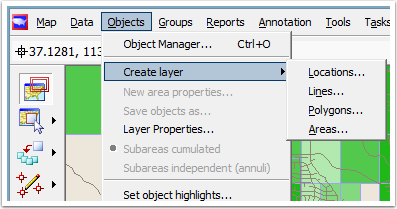 First, as shown above from the Objects menu, choose "Create layer --> Polygons...". This creates the layer, and you have an opportunity to name the layer, as shown below: