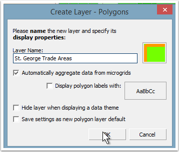 After naming your Polygon layer, which is the name that will show up in the "Layers in Map" dialog, click OK.