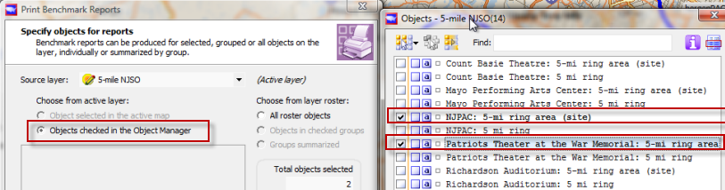 Your source layer will be the "5-mile NJSO" layer. Unlike Site Express, "Print Comparison reports" does not create your compare objects for you. You must have them already in hand.