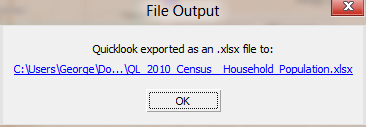 What comes up is a link to the file, and an OK button. If you click the link, you will see the exported file opened up in Microsoft Excel.