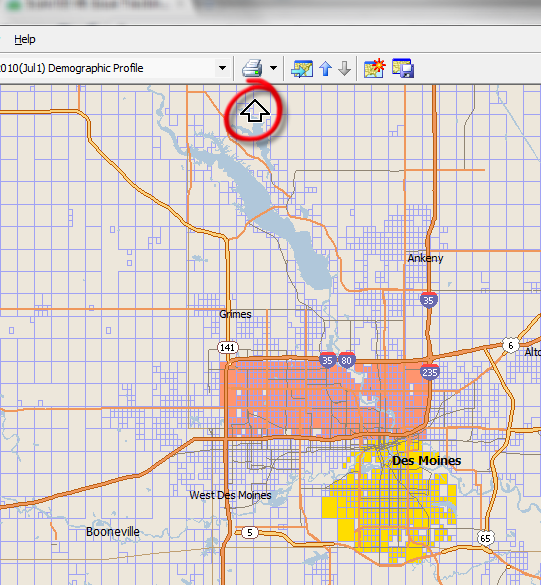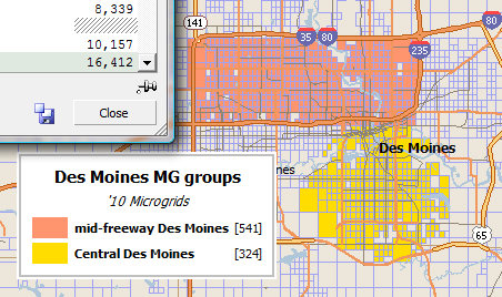 Before you can show a group summary, you need to have a group. We will leave counties behind, and make a couple of MicroGrid groups in the Des Moines area. First, using Quicklook, select Polk County in the map.