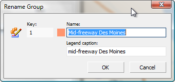 The grouping legend will appear. It shows the number of Microgrids (541 and 324 in the example above) in each group. If you notice you have made a spelling mistake, the best way to change it is to choose "Group Manager" from the Scan/US Groups menu at the top of the screen, and right-click on the group name in the Group Manager to get the "Rename group .." option